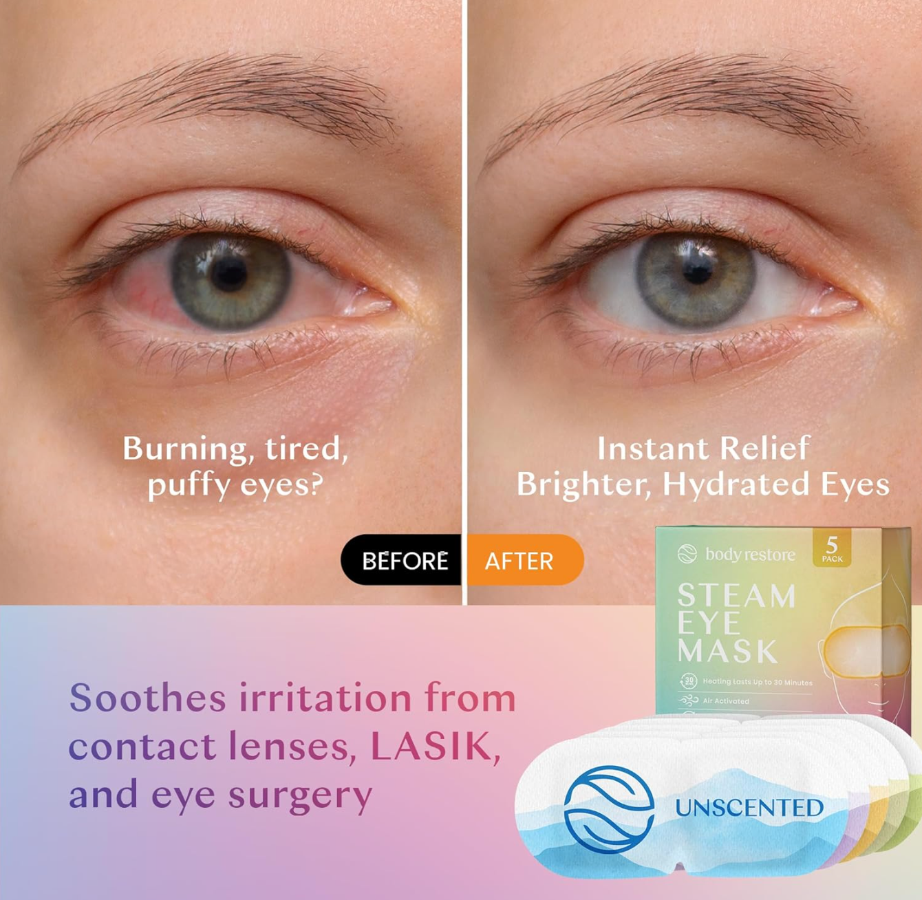 This eye mask combines steam, moisture, and minerals to relax tired eyes and achieve a high level of relaxation. Helps reduce the look of puffy eyes, promotes more restful sleep, and helps relieve tension and stress