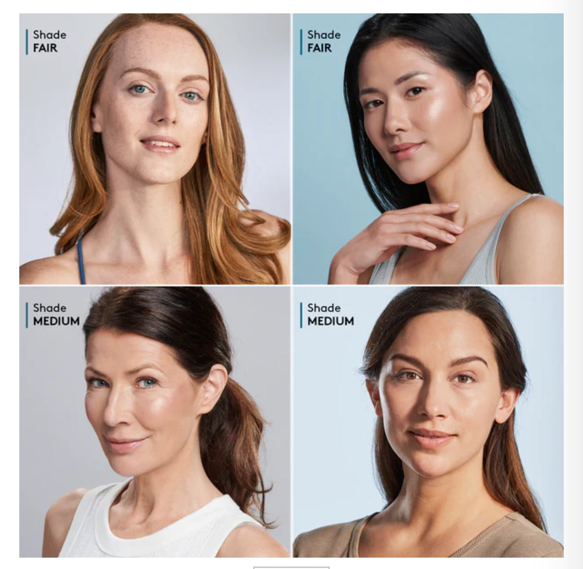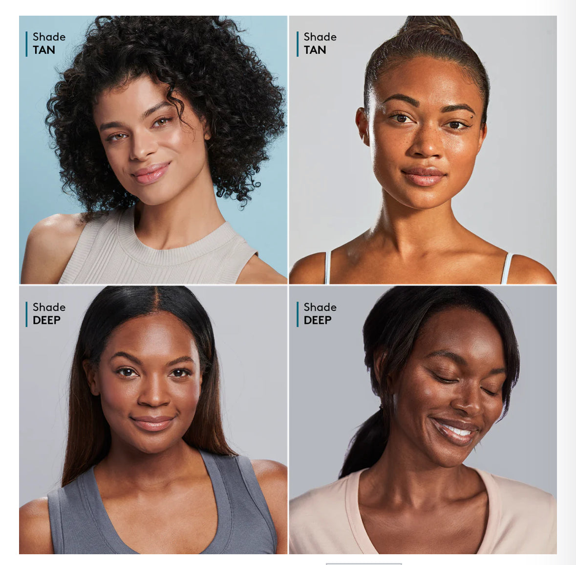 Available in four uniquely flexible shades, each ideal for a broad range of skin tones and under tones. Safe for all skin types, including sensitive.