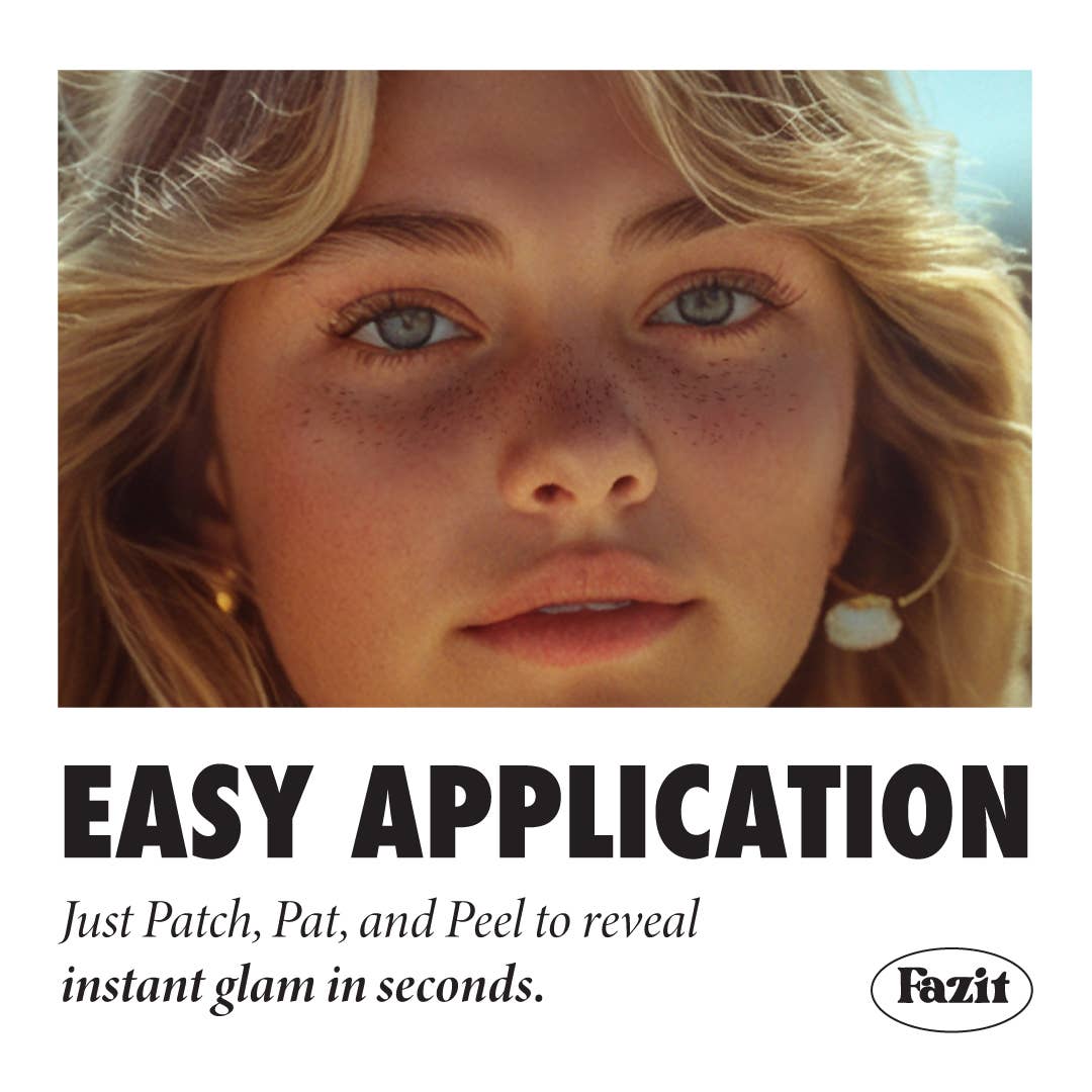 Freckles are hot sun damage is not. Fazit's Faux Freckle makeup patches ensure a seamless application method, allowing you to unveil your summer speckles all season long with 6 patches. Simply press, pat, and peel to reveal sun-kissed skin in mere seconds. Say goodbye to the hassle of hand-drawing freckle designs – Fazit's patches have you covered for a natural look.