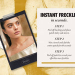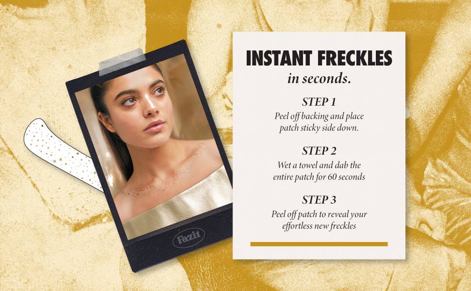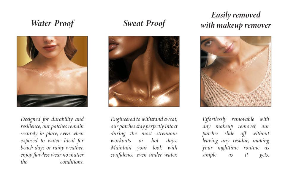 Simply press, pat, and peel to unveil a cascade of golden speckles that catch the light with every move—no brushes, no mess, just flawless application. Whether you're elevating your everyday glow or making a bold statement, this is shimmer made simple.