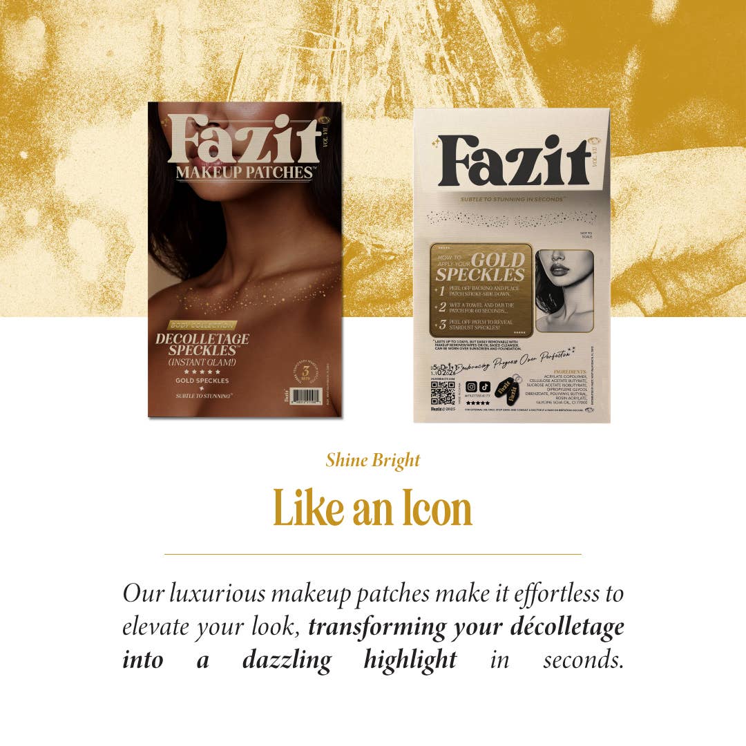 Let your collarbones steal the spotlight. Fazit's Stardust Speckle Patches deliver an effortless touch of radiant shimmer, designed to enhance your natural contours in seconds.